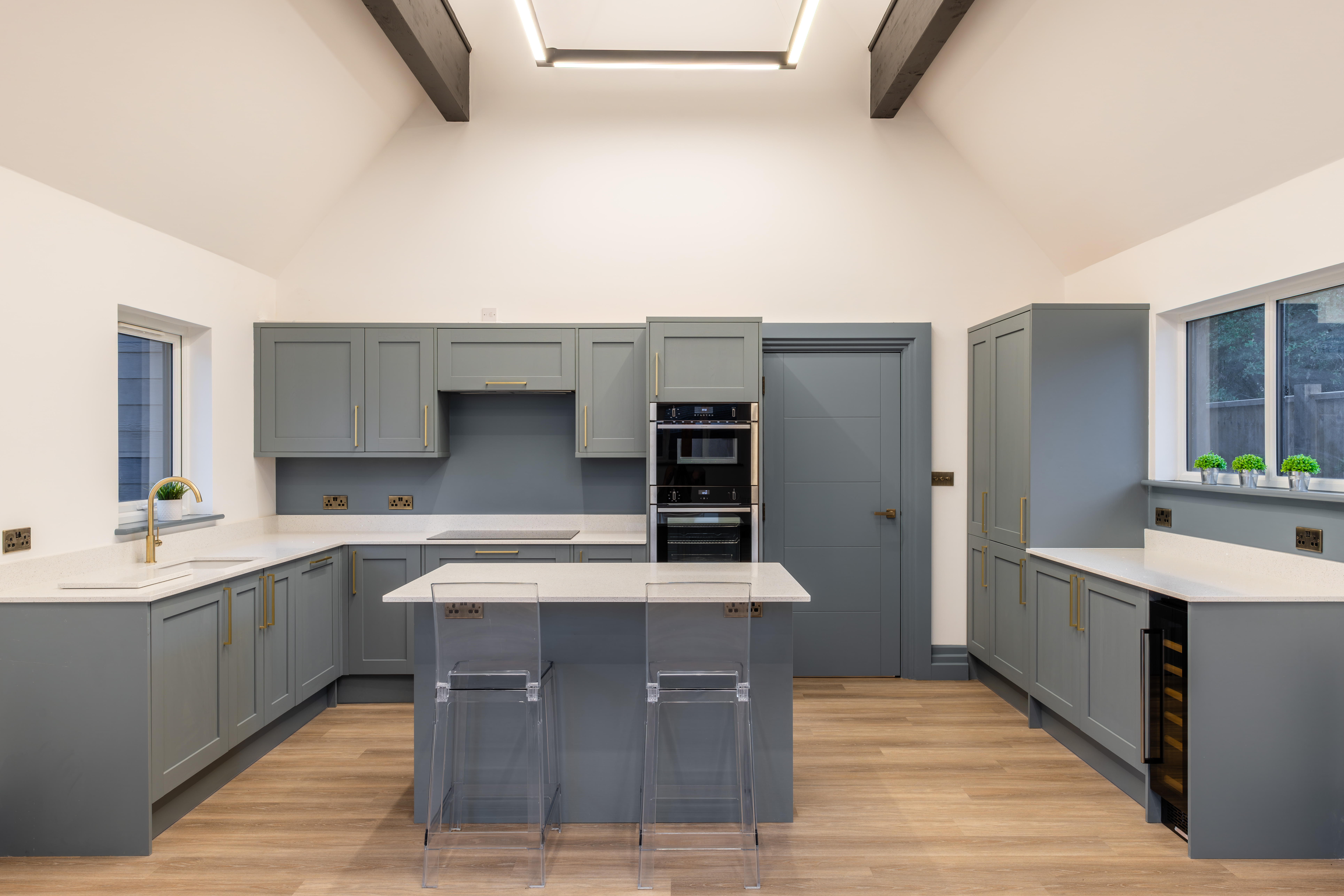 At the heart of the home lies the spectacular 31ft open-plan kitchen / dining / family room, boasting a stunning 16ft double-height vaulted ceiling, bi-fold doors opening onto the garden, and a luxury fitted kitchen complete with Quartz work surfaces.